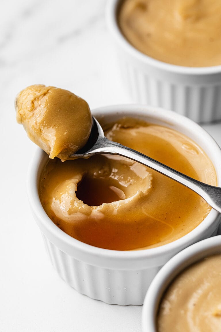 These salted caramel pudding custards are already terribly good on themselves! However, I’ll never say no to a few little toppings to elevate the tasting experience! I love to drizzle with homemade caramel sauce or maple syrup, some granola or roasted nuts for crunchiness, and finish with an extra pinch of salt!